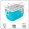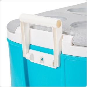 Дополнительным плюсом является то, что термобокс не нужно подключать к электросети. Контейнер, вместимостью 57 л, очень удобно брать с собой. Он не занимает слишком много места в багажнике, а также имеет 2 удобные ручки по бокам для переноски.