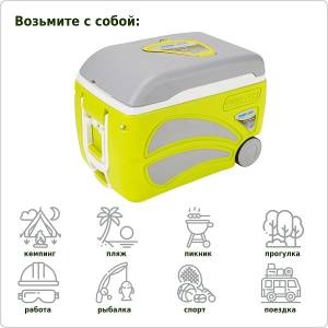 Дополнительным плюсом является то, что термобокс не нужно подключать к электросети. Контейнер, вместимостью 45 л, очень удобно брать с собой. Он не занимает слишком много места в багажнике, а также имеет ручку и колеса для удобной транспортировки.
