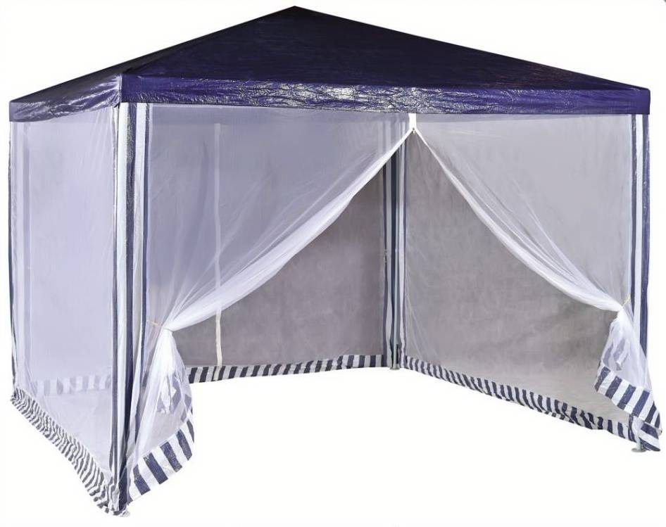Тент шатер Green Glade 1033 имеет легкий каркас из металлической трубки. Тент выполнен в виде квадрата 3x3 метра со стенками высотой 2,5 м. Покрытие тента сетчатый полиэтилен плотностью 115 г/м.