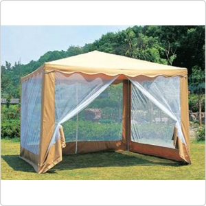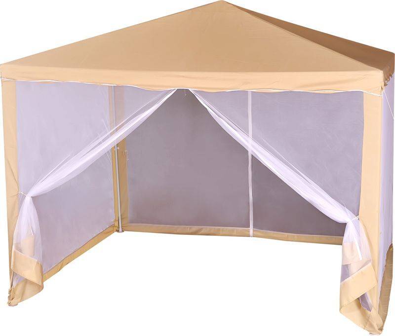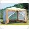 Тент шатер Green Glade 1040 – практичный тент со стенками из москитной сетки. Он имеет легкий каркас из металлической трубки. Тент выполнен в виде квадрата 3x3 метра с прямыми стенками высотой 2 м. В центре купол имеет высоту 2,5 метра. Покрытие тента - полиэстер плотностью 160 г/м.