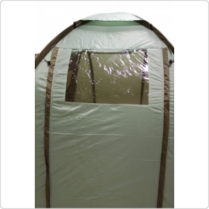 палатка с двумя раздельными "комнатами", большой внутренний защищенный тамбур, обзорные окна, москитные сетки на входе и окнах, откидной козырек на стойках, вентиляция