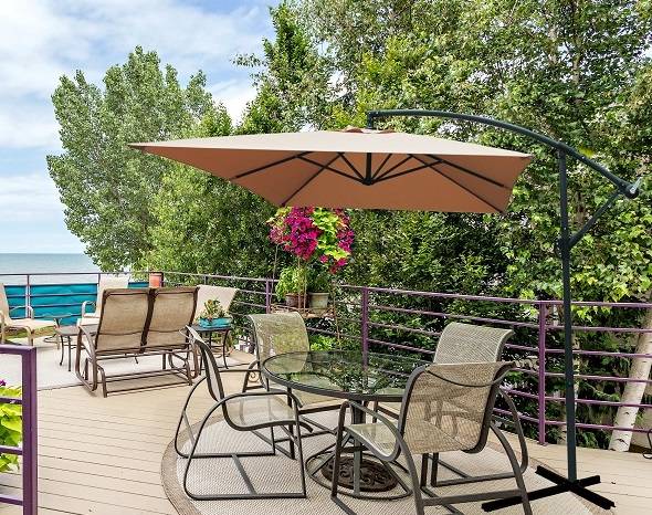 В комплекте с зонтом идет основание – крестовина, на которую для устойчивости зонта можно установить бетонные утяжелители (в комплект не входят) или привернуть ее через имеющиеся отверстия к полу.