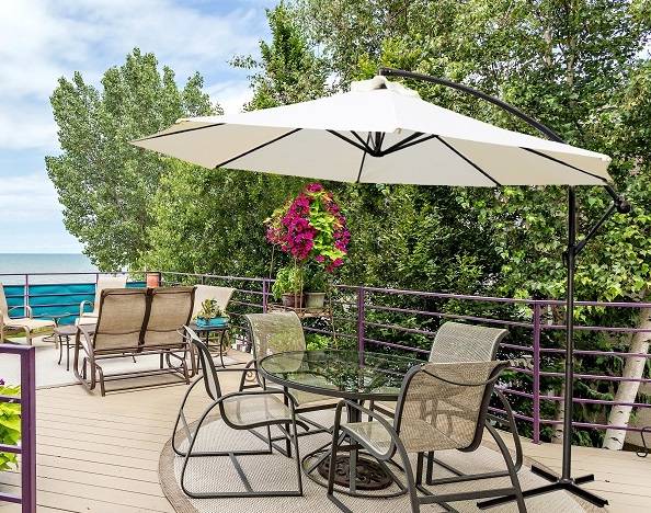В комплекте с зонтом идет основание – крестовина, на которую для устойчивости зонта можно установить бетонные утяжелители (в комплект не входят) или привернуть ее через имеющиеся отверстия к полу.