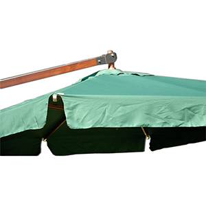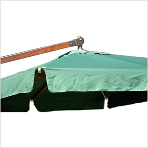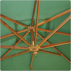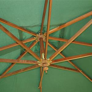 Каркас зонта - древесина твердых пород. Ткань: прочный плотный водонепроницаемый полиэстер 200мг.м2. Стальное крестообразное основание в комплекте. Система легкого откр/закр, рукоятка (лебедка) с проволочным тросом.