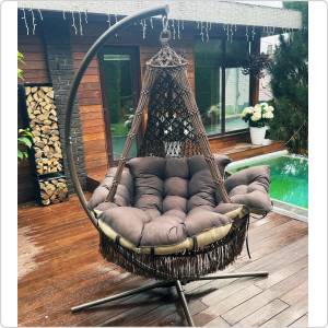 Модная новинка – подвесной гамак-кресло CARTAGENA с невероятно мягкими и комфортными подушками – сплетен вручную из полиамидной нити.