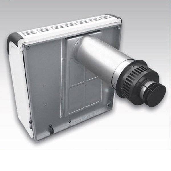 Забор воздуха и выброс продуктов горения происходит через коаксиальную газоотводящую трубу на улицу. В отличии от котельного оборудования, система не подвержена промерзанию при нерегулярном использовании.