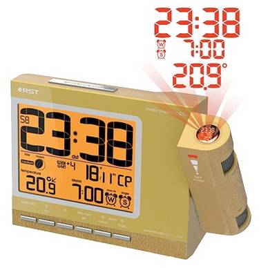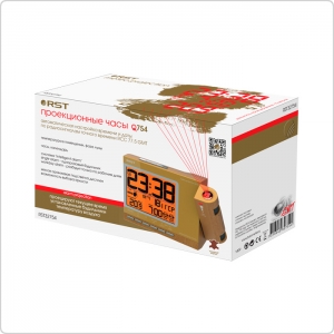Проекционные метеочасы RST 32754 осуществляют проекцию времени, температуры внутри помещения и времени установки будильника на стену или потолок в тёмное время суток. Проекция красного цвета с дальностью проецирования до 10 метров. Кроме того, часы оснащены "умным" будильником и анимированным лунным календарем с указанием силы приливов и отливов. Метеочасы отображают температуру внутри помещения и тенденцию ее изменения. Есть автоматическое запоминание максимального и минимального зарегистрированного значений температур внутри помещения.