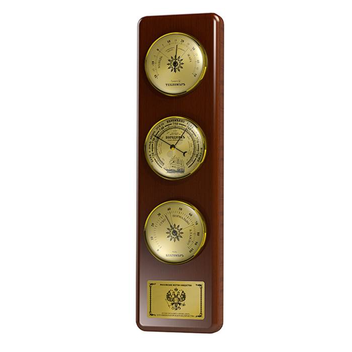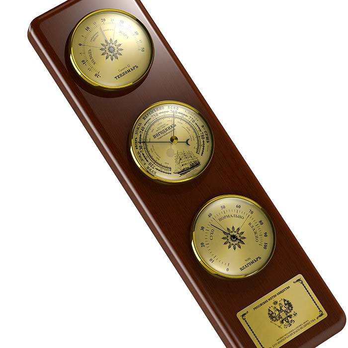 Метеостанция Крузенштерн 16 (Падуя) 1926. Четырехмачтовый баркъ RST 05116 содержит в себе сразу три устройства: барометр, термометр и влагометр. Устройство выполнено в старинном стиле, со старорусским написанием погодных прогнозов. Корпус барометра изготовлен из дерева. Диапазон измеряемых величин атмосферное давление от 710 до 790 мм Рт ст, температура в пределах от -20 до +40 град С, влажность от 0% до 100%.
