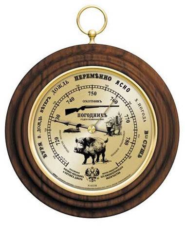 Бapoмeтp ПогодникЪ Охотник RST 05358 выполненный в старинном стиле в корпусе из дерева - необходимая вещь для охотников и рыболовов. С его помощью измерятся величина атмосферного давление воздуха и ее изменение. Как это помогает ловить рыбу? - да очень просто. Рыбак, сможет точно определить в какой из дней будет хороший клёв. Если в течение нескольких дней показания барометра особенно не изменяются – можно отправляться на рыбалку! Если давление резко изменилось - ловить рыбу бесполезно. Разные виды рыб по-разному реагируют на изменение атмосферного давления. Хищники любят активно охотиться при понижении давления. Повышение давления используют мирные рыбы для питания.