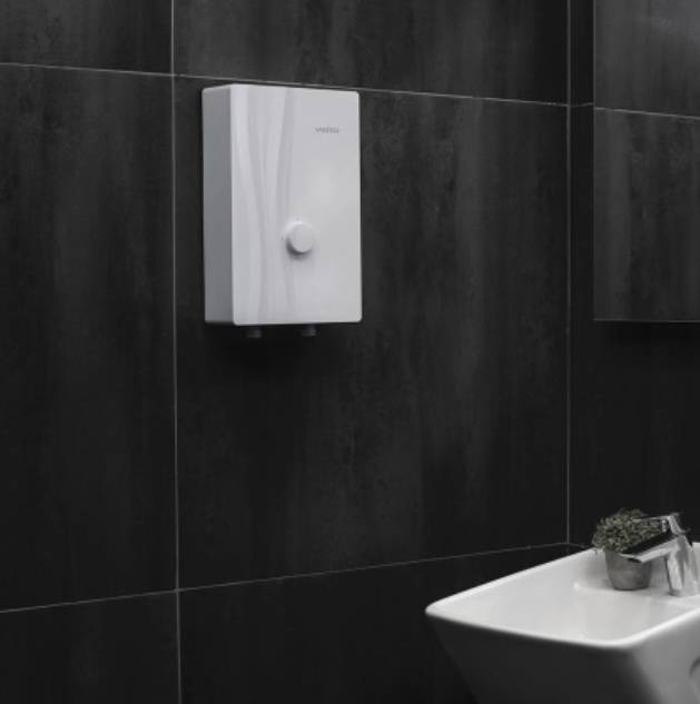 Проточный электрический водонагреватель имеет спиральный нагревательный элемент. Рассчитан на централизованное давление сети водопровода до 10 бар (1,0 МПа). Автоматическое включение/выключение при открытии/закрытии крана.
