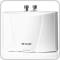 CLAGE MBH 7 – миниатюрный, но при этом чрезвычайно производительный проточный водонагреватель, который рассчитан для работы с одной точкой потребления: смесителем на кухне или краном умывальника в ванной комнате. Рекомендуется для эксплуатации в домашних условиях, в офисных зданиях, сферах торговли и обслуживания. В момент открытия вентиля включает нагревательный элемент, мгновенно подавая подогретую воду. Устройство располагается под раковиной и функционирует от трехфазной бытовой сети. Корректировка нагрева осуществляется с помощью гидравлического способа управления. В комплект с водонагревателем идет гибкая подводка и тройник для подключения к системе холодного водоснабжения. CLAGE MBH 7 благодаря спиральному нагревательному элементу может использоваться с жесткой водой.