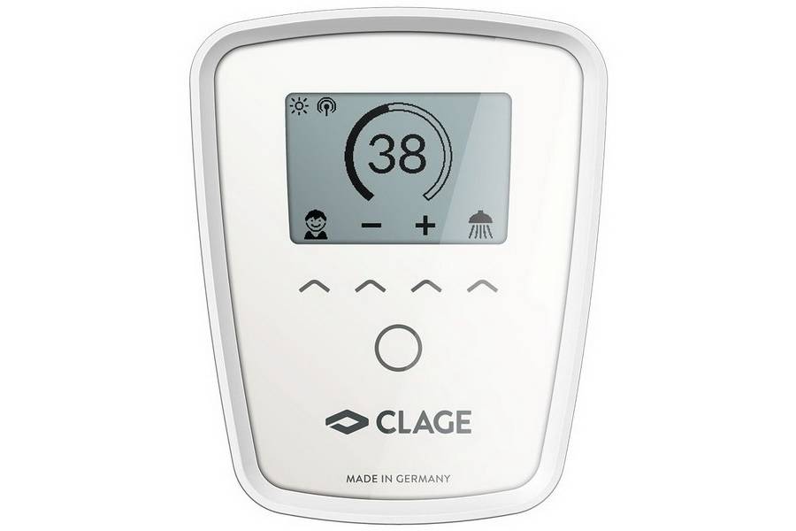 CLAGE DEX Next имеет электронный принцип управления, что обеспечивает равномерную подачу воды заданной температуры на все точки потребления при условии достаточной мощности прибора для прогрева потока. Температурный режим, который может быть установлен пользователем, составляет от +20°C до +60°C, а точность поддержания температуры не превышает значения в один градус. Корректировка уровня нагрева осуществляется с помощью сенсорного дисплея, через пульт дистанционного управления, который приобретается отдельно, или с помощью приложения Smart Control, установенного на планшет или смартфон под iOS/Android.