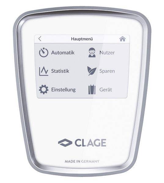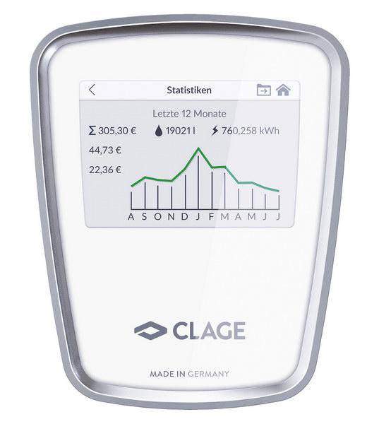 Водонагреватель CLAGE DSX Touch New имеет весьма удобный и интуитивно понятный интерфейс системы управления, а настройки доступны посредством сенсорного экрана, выполненного из стекла. Его подсветка меняет цвет в зависимости от текущей установленной температуры от синего до красного. С помощью сенсорного принципа управления пользователь может быстро менять температурные режимы, проводя по круглому ползунку регулятора, выбирать необходимую установленную программу нагрева воды, а также корректировать температурный нагрев с шагом 0,5°. Отдельно стоит сказать о том, что на дисплее отображается дополнительная информация о расходе воды и электроэнергии. Пользователь может получить отчет за различные промежутки времени, причем результаты также доступны в денежном выражении. Для удобства восприятия информация может выводиться в виде графиков.