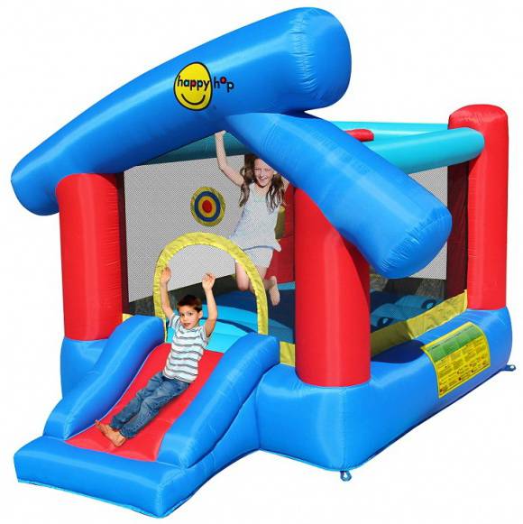 Детский надувной Батут Игровой город 6 в 1 HAPPY HOP 9111 - отлично подходит для различных игр ребенка, главные из которых, конечно же, веселые прыжки и катание с горки. Батут очень сильно напоминает сказочный домик избушку, в которой дети могут расположиться не только для активных, но и для спокойных игр.