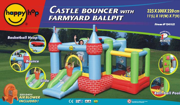 Детский Игровой центр Цитадель HAPPY HOP 9112 – целый развлекательный комплекс, рассчитанный на трех детей в возрасте от трех до десяти лет. Дети смогут совершать разнообразные прыжки, кататься с горки, бросать мяч в корзину и играть в отдельной игровой зоне, которую можно заполнять мячами (в комплекте).