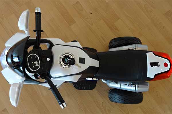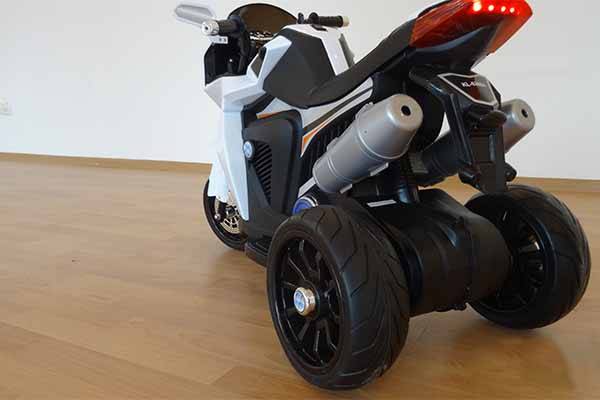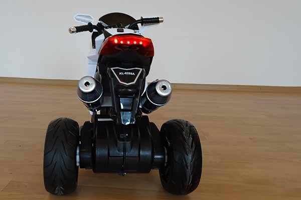 Мотоцикл электрический детский имеет два варианта движения: вперед и назад. Предусмотрены звуковые и световые эффекты: мелодии на руле, МР3 выход, фара, задний габарит и подсветку мотора. Вес мотоцикла в собранном виде не превышает 9,2 кг.