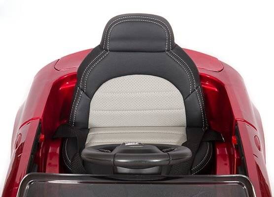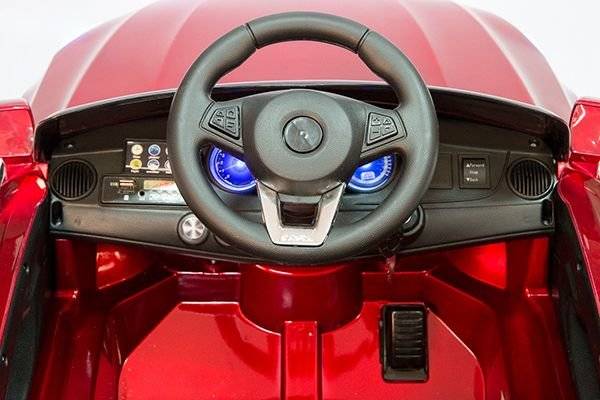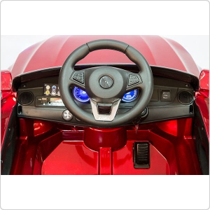 Для удобной и реалистичной езды в машине имеются яркие светодиодные фары и LED-подсветка панели приборов, которые позволяют комфортно передвигаться в более темное время суток. За безопасность ребенка во время прогулки на детской машине отвечают ремни безопасности и дверные замки, которые защелкиваются при захлопывании. Широкие зеркала заднего вида позволяют совершать передвижение назад, не поворачивая корпус. Это тренирует у ребенка внимательность.