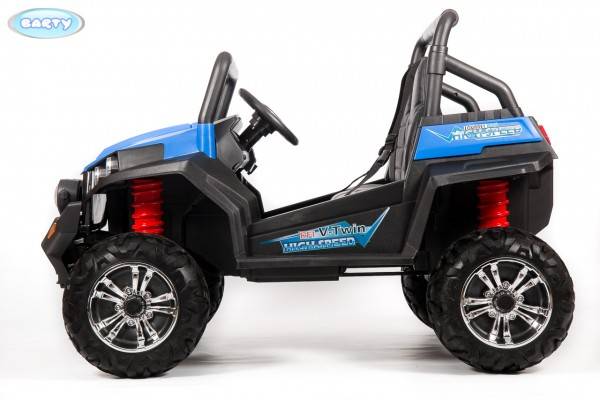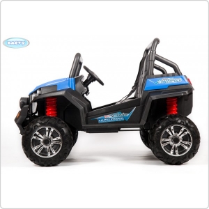 Кузов и каркас отличаются высокой прочностью используемых материалов, которые долгое время сохраняют солидный внешний вид. Металлическое основание служит для выдерживания максимальной нагрузки в 40 кг. Полноприводной детской машине с четырьмя моторами по 45W не страшны никакие преграды. Авто спокойно преодолевает любые спуски и подъемы, ему подвластны не только асфальтированные дороги, но и грунтовые тропинки. Амортизированные колеса с глубоким протектором противостоят скольжению и пробуксовке.