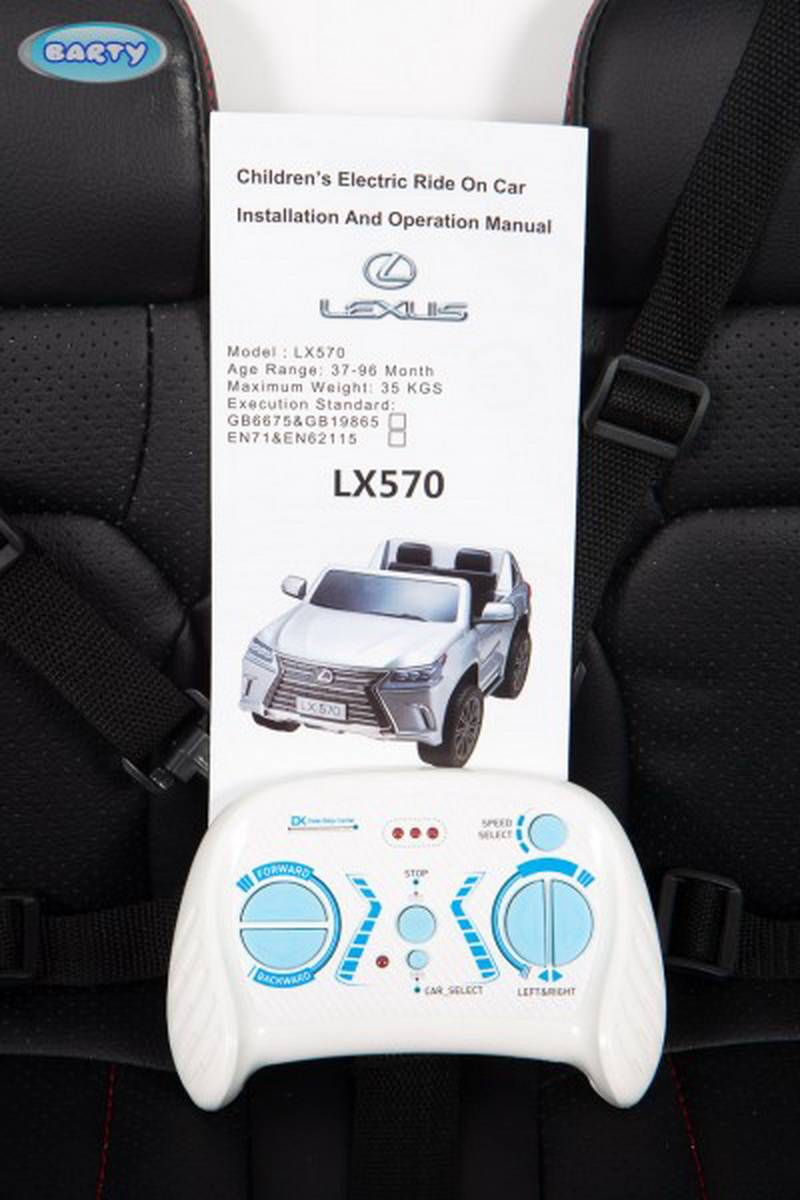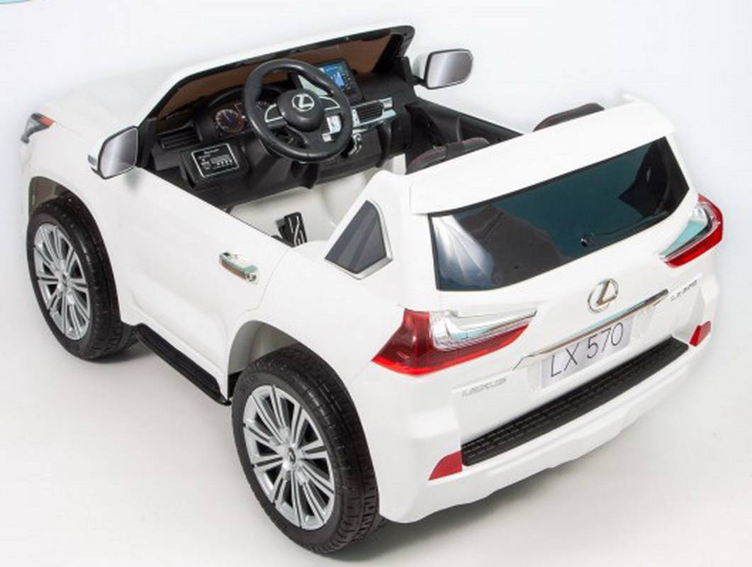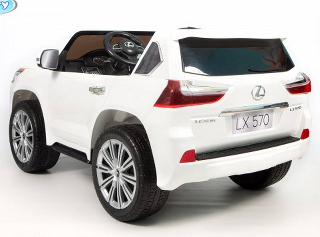 Детский электромобиль Barty Lexus LX 570 белый – уникальная лицензионная полноприводная модель со съемным аккумулятором для зарядки отдельно от авто. Электромобиль изготовлен по лицензии Lexus и максимально точно похож на оригинальную машину. Открывающиеся капот и двери, музыкальное сопровождение, реалистичные фары, стоп-сигналы и другие детали позволят ребенку почувствовать себя за рулем настоящего авто.