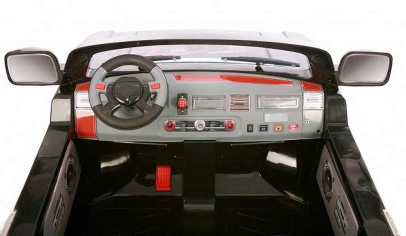 В салоне машины ребенок будет почувствовать себя настоящим водителем, так как она оснащена эргономичным рулем, рычагом переключения скоростей, педалью газа-тормоза, клаксоном. Электроавтомобилем малыш может управлять сам. В темное время есть возможность включить фары, а чтобы поездка не была скучной, просто включите музыку. Электромобиль с пультом управления помогает родителям следить дистанционно за каждым маневром своего ребенка на дороге.