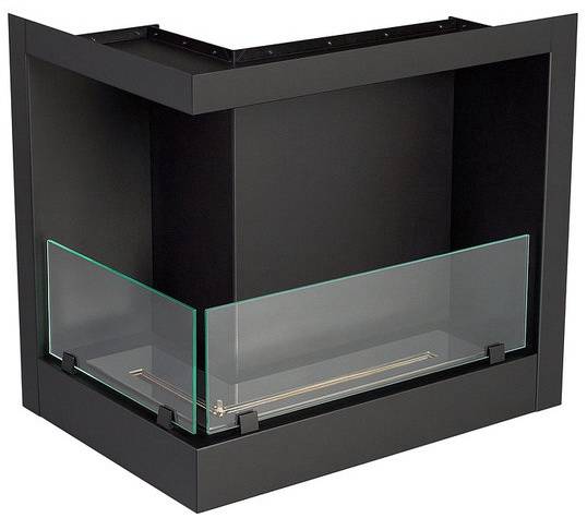 В комплект углового биокамина Concept L Righ входит кожух из высококачественной стали толщиной 1 мм, защитные экраны прямоугольной формы из закалённого стекла и угловая топливная кассета не имеющая аналогов на рынке. Топливная кассета изготовлена из шлифованной нержавеющей стали и комплектуется специальной кочергой для регулировки высоты пламени и его гашения. Топливный бак объемом 2 л обеспечивает непрерывное горение биокамина в течении 3 часов с момента полной заправки. Корпус биокамина покрыт огнеупорной порошковой краской черного цвета итальянского производства.