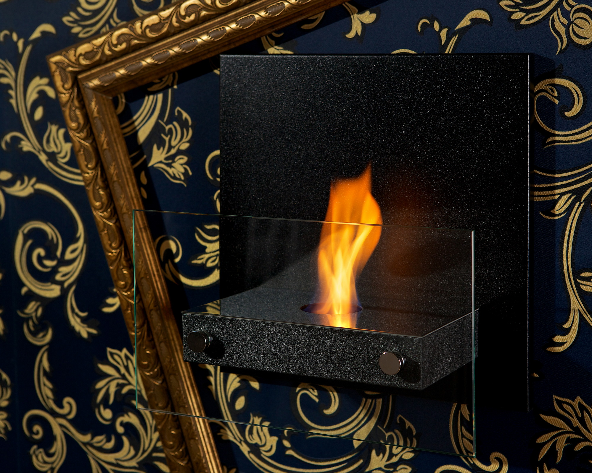 В качестве топлива в биокамине используется биоэтанол, при заказе камина, топливо в подарок. Он не создает неприятных запахов, не образует копоти и пепла. Кроме того, при горении биотопливо выделяет водяные пары, естественно увлажняя воздух в помещении. Корпус камина изготовлен из прочной стали и покрыт качественной термостойкой краской финского производства. Спереди на настенный биокамин для квартиры установлен защитный экран из огнестойкого закалённого стекла.