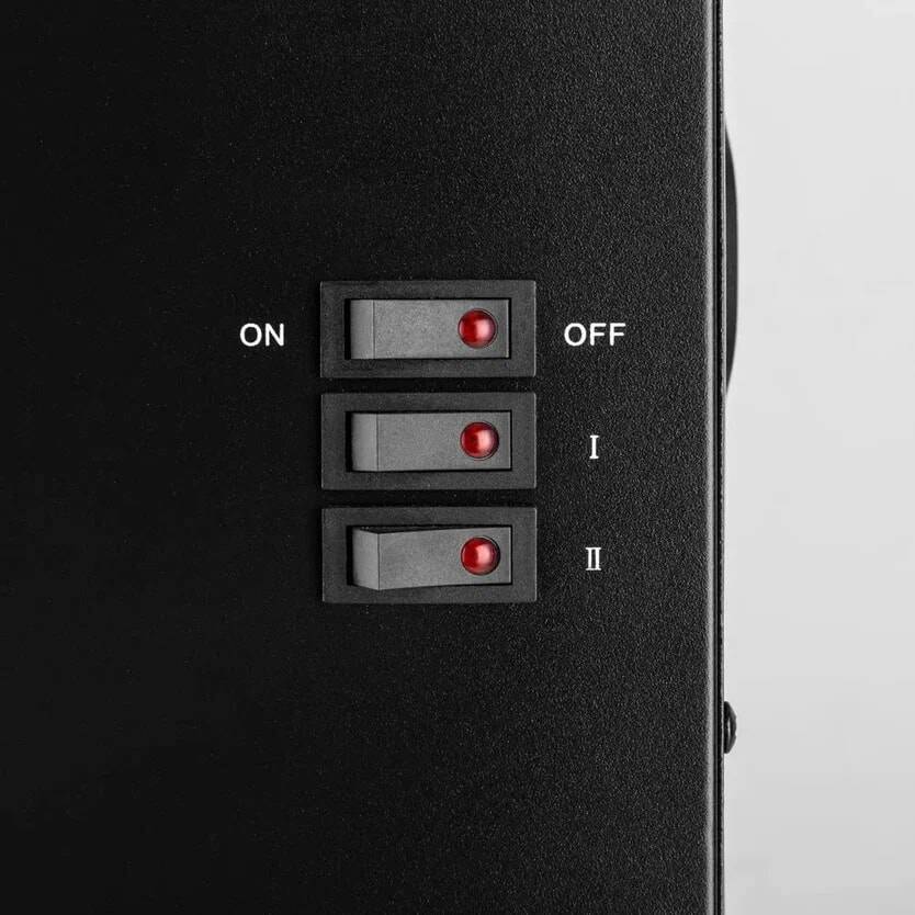 Температуру обогрева можно регулировать, предусмотрено два режима – 1000 Вт и 2000 Вт. Модель оснащена регулируемым термостатом и тепловым предохранителем.
