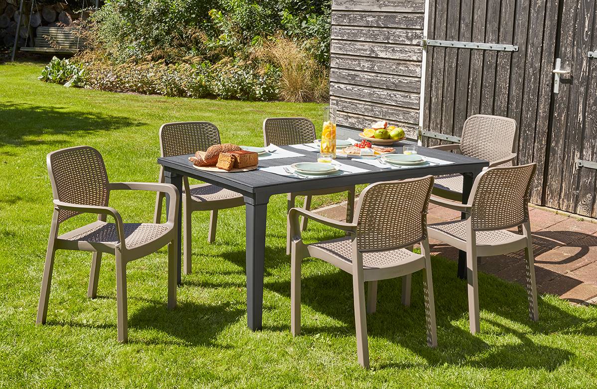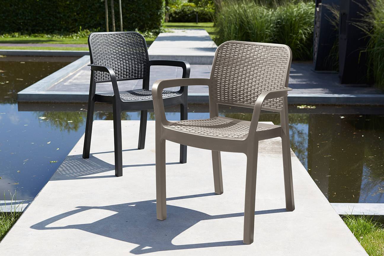 Стул из пластика Keter Samanna (Саманна) сочетает в себе элементы гладкого пластика и пластика, имитирующего искусственный ротанг. Таким образом, он отлично сочетается с различными комплектами мебели KETER.