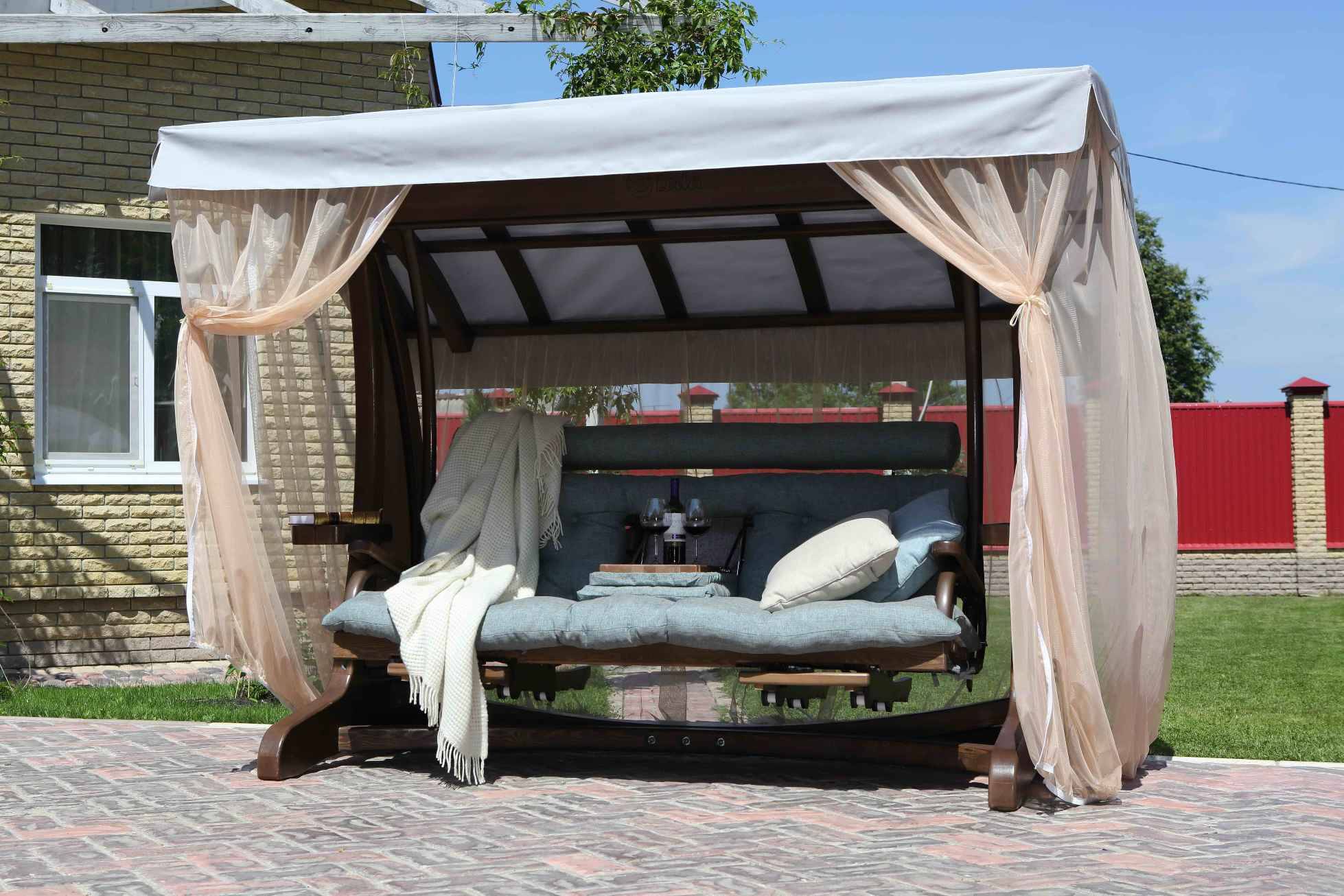 Внимание! На фото изображены садовые качели "Валенсия III" с москитной сеткой белого цвета.