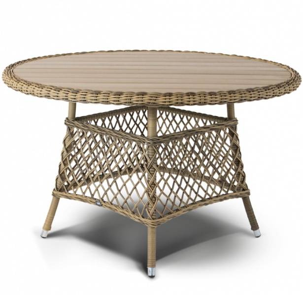 Обеденный стол Равенна создан специально для дружной компании. Круглая форма стола переплетена искусственным ротангом, известным своей долговечностью. Фактура столешницы выполнена под дерево, с торца оплетена искусственный ротангом и легка в эксплуатации. Стол Равенна - гармоничное сочетание природы, классических мотивов, современного стиля и практичности.