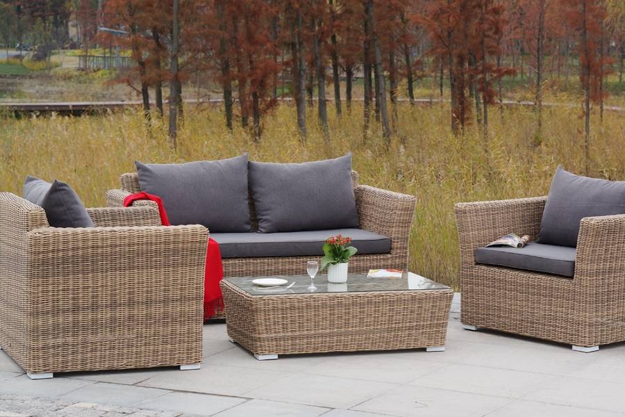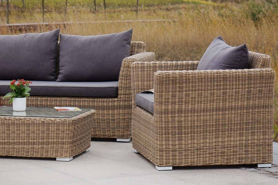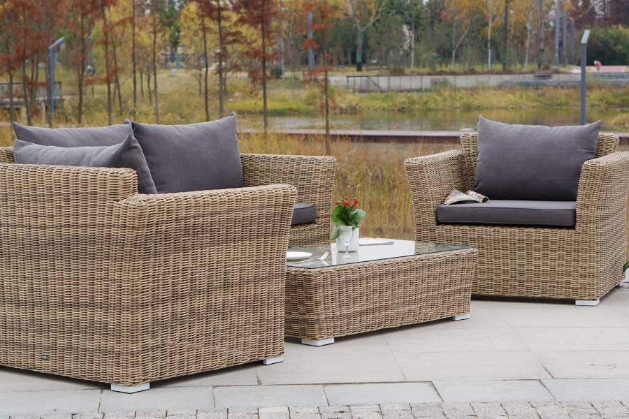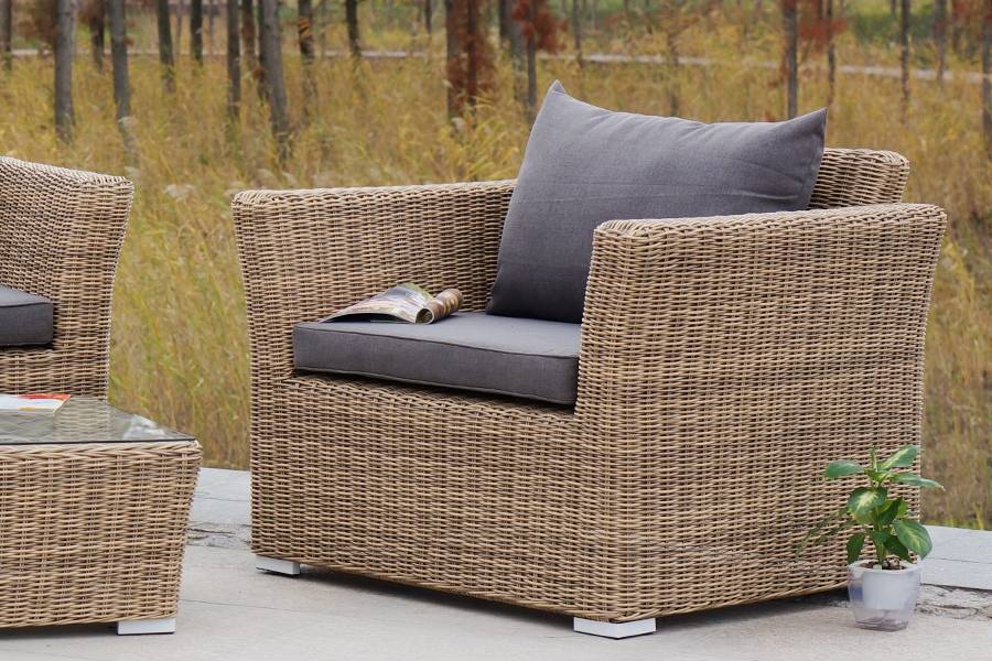 - Высококачественный и неприхотливый искусственный ротанг серо-желтого оттенка