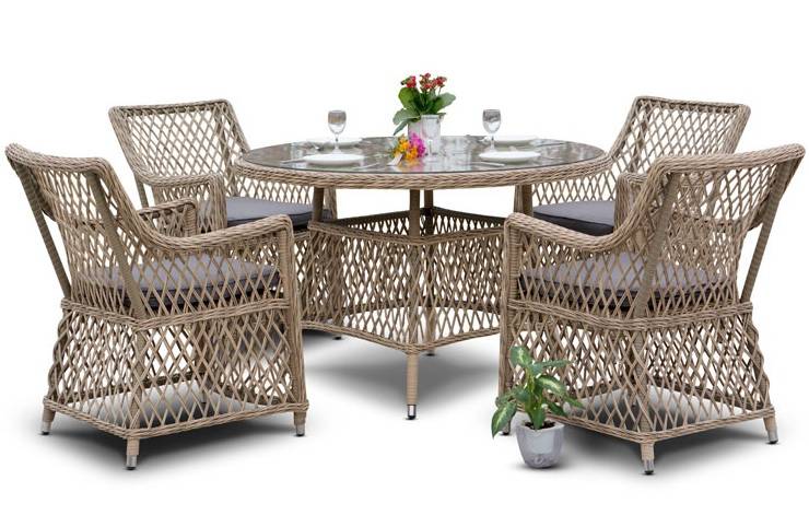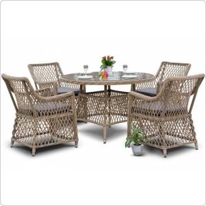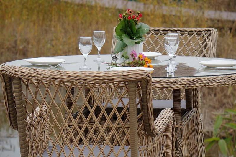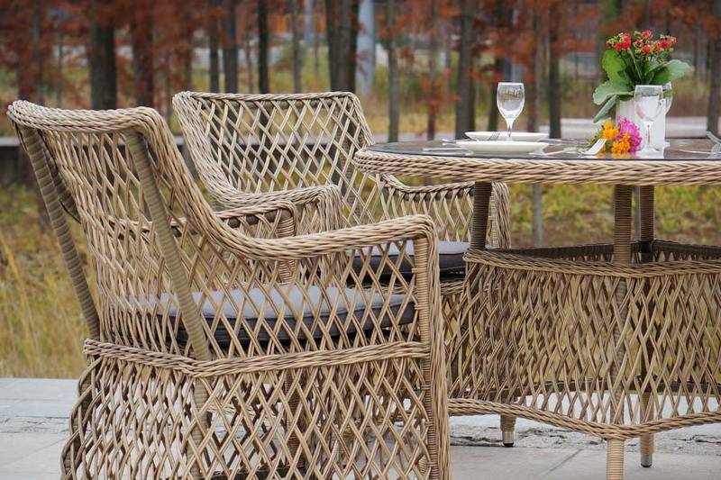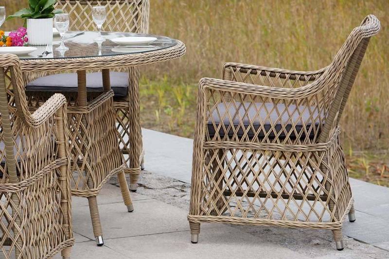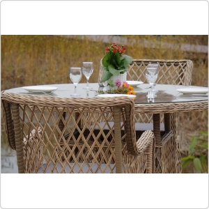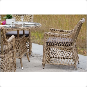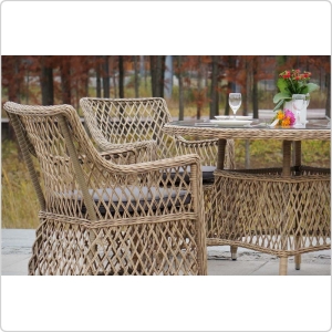 Рисунок плетения искусственного ротанга наполнен декоративными ажурными орнаментами, подчеркивающими аристократический изящный образ мебели и наполняющими пространство особым шармом и и утонченностью. Плетение ротанга пронизано легкостью и воздушностью, которое наделяет комплект необыкновенной изысканностью и выразительностью.
