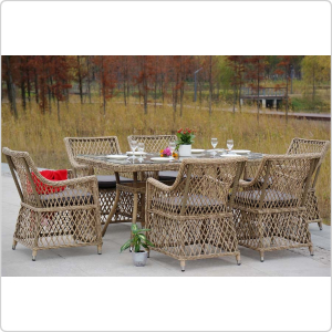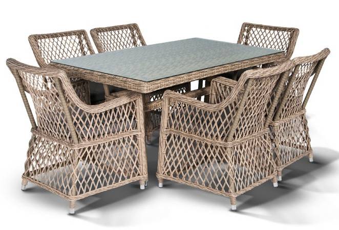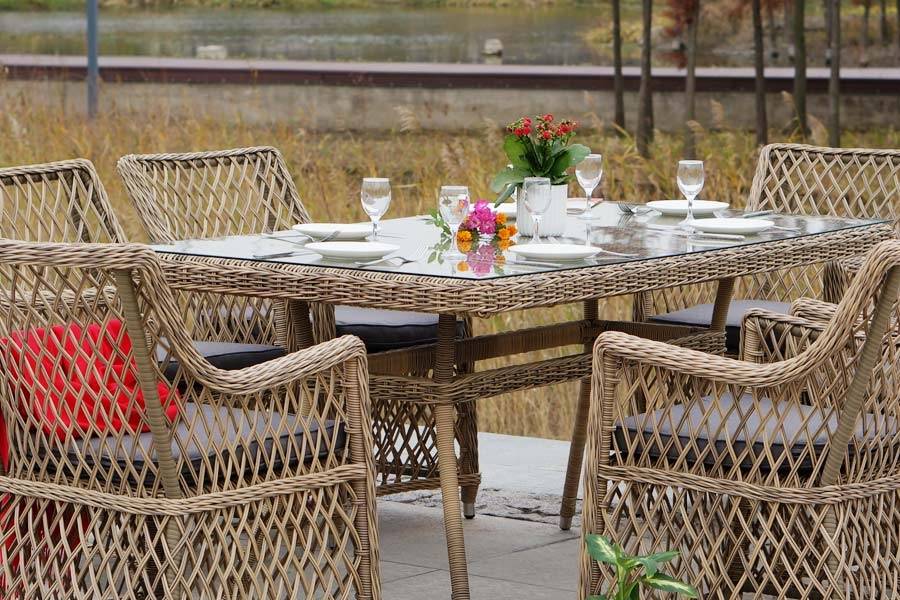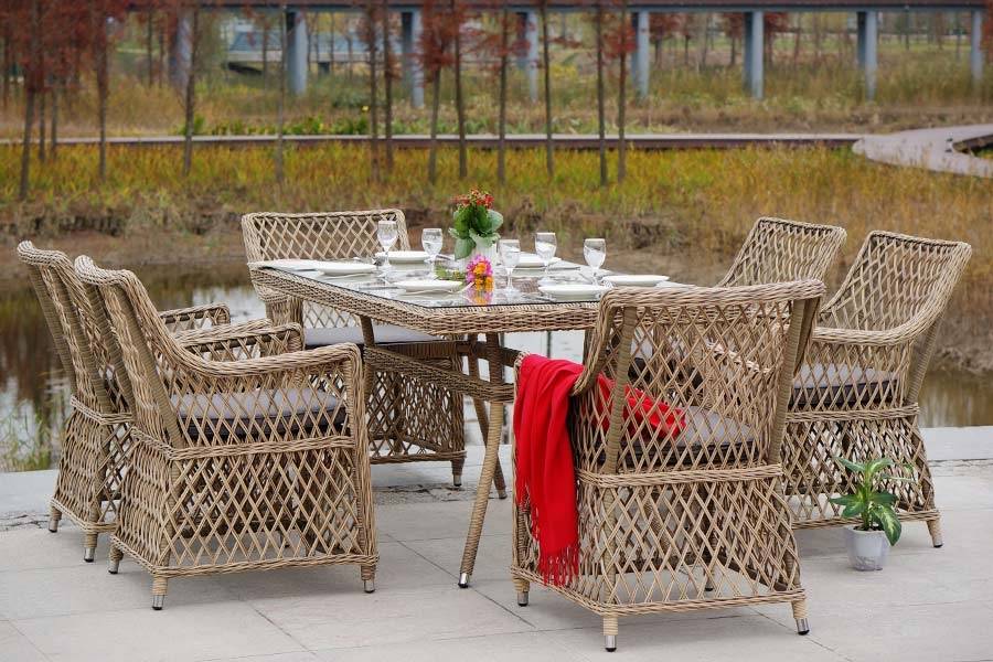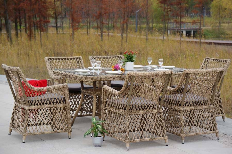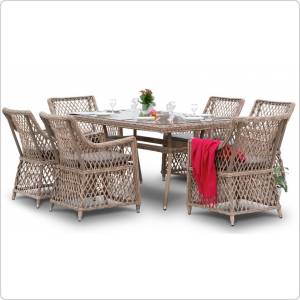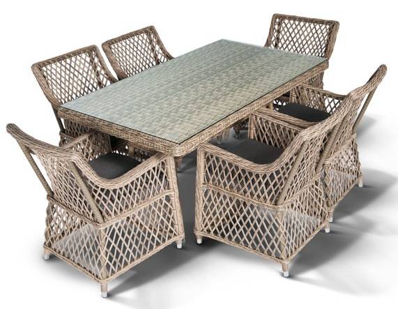 Из искусственного ротанга. Большой стол, комфортные кресла