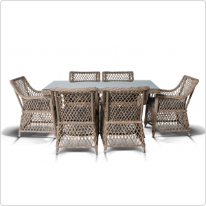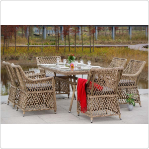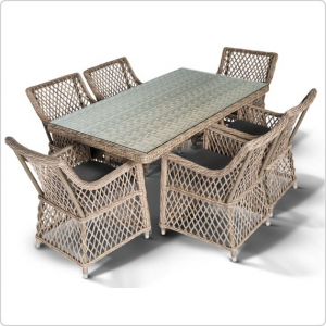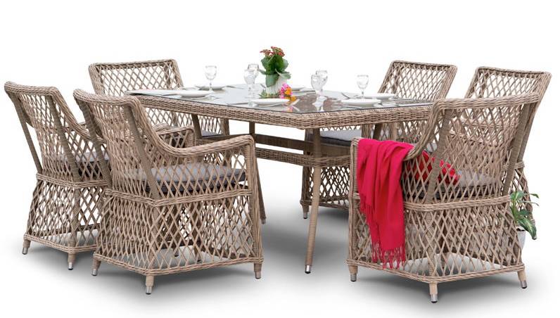 Рисунок плетения искусственного ротанга наполнен декоративными ажурными орнаментами, подчеркивающими аристократический изящный образ мебели и наполняющими пространство особым шармом и и утонченностью. Плетение ротанга пронизано легкостью и воздушностью, которое наделяет комплект необыкновенной изысканностью и выразительностью.