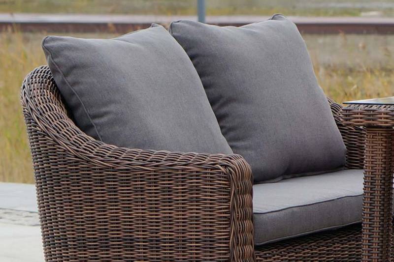 - Подушки выполнены из водостойкой полиэфирной ткани для защиты мебели от дождя и солнца