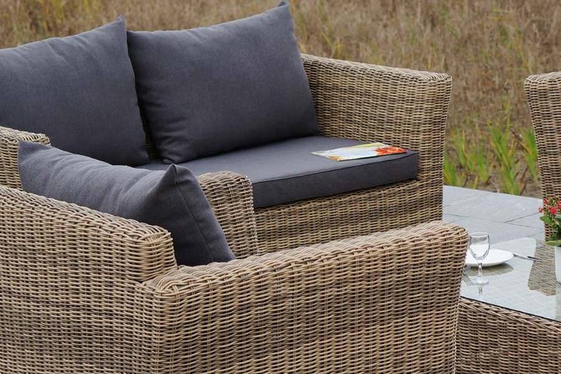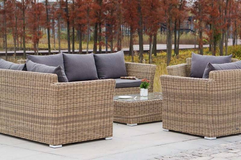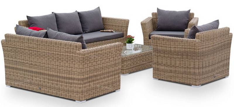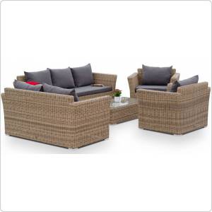 Лаунж зона 4 SIS Капучино Дабл — расширенный вариант лаунж зоны 4 SIS Капучино. Коллекция состоит из 2-х диванов: двухместного и трехместного, двух кресел и журнального столика. Комплект очень вместительный, рассчитанный до 7 человек, подойдет даже в самую большую гостиную или веранду.