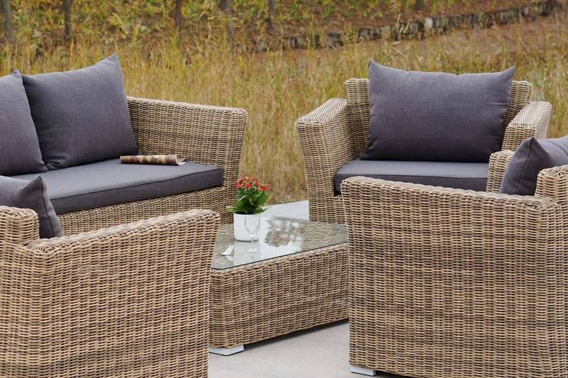 - Высококачественный и неприхотливый искусственный ротанг серо-желтого оттенка