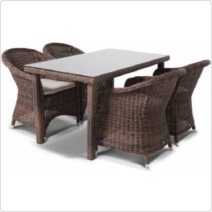 Обеденная группа 4 SIS Эспрессо Шоколад — обеденный комплект мебели, состоящий из 4-х удобных кресел эргономичной формы и классического прямоугольного стола. Мебель выполнена в насыщенном темно-коричневом цвете, который удачно подчеркнут светлыми подушками. Кресла украшены широким фактурным кантом, обрамляющим весь силуэт изделия. Прозрачная столешница подчеркивает красоту ротангового полотна.