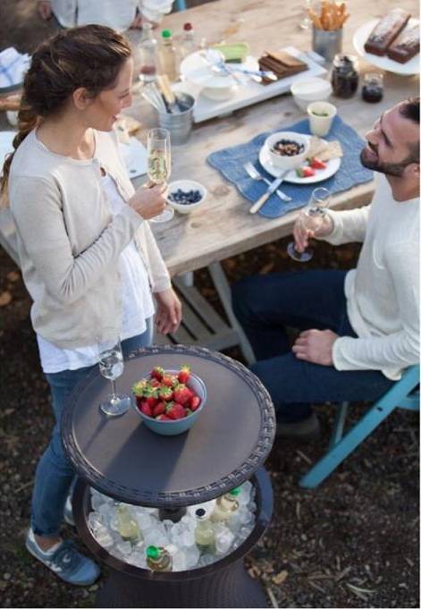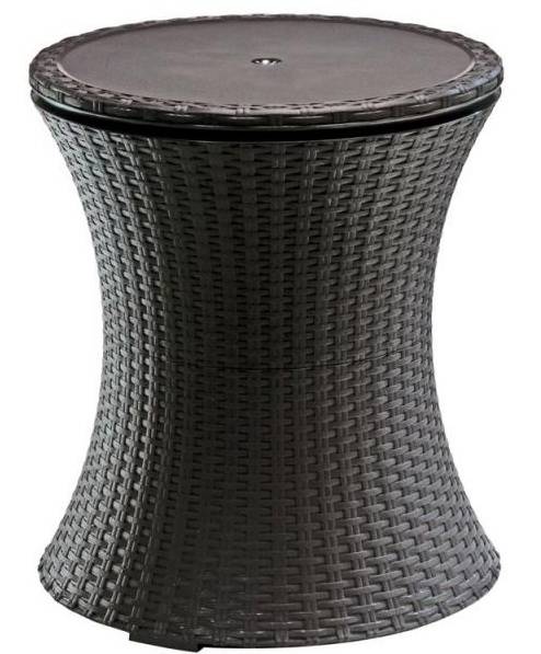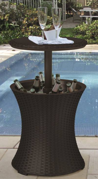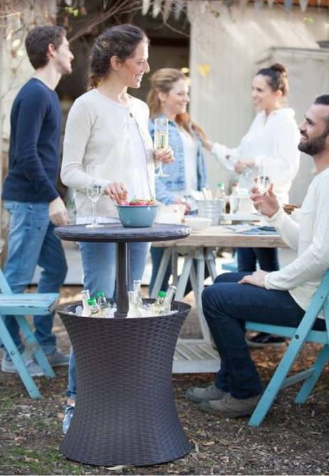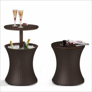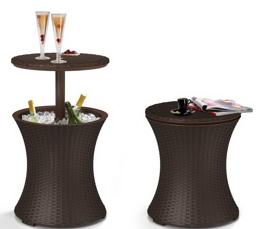 Функциональная модель стол-бар Keter Rattan Cool Bar с закрытой крышкой - это журнальный или кофейный столик. С поднятой - коктейльный бар и охладитель напитков. Удобное и стильное решение для барбекю и других мероприятий на открытом воздухе.