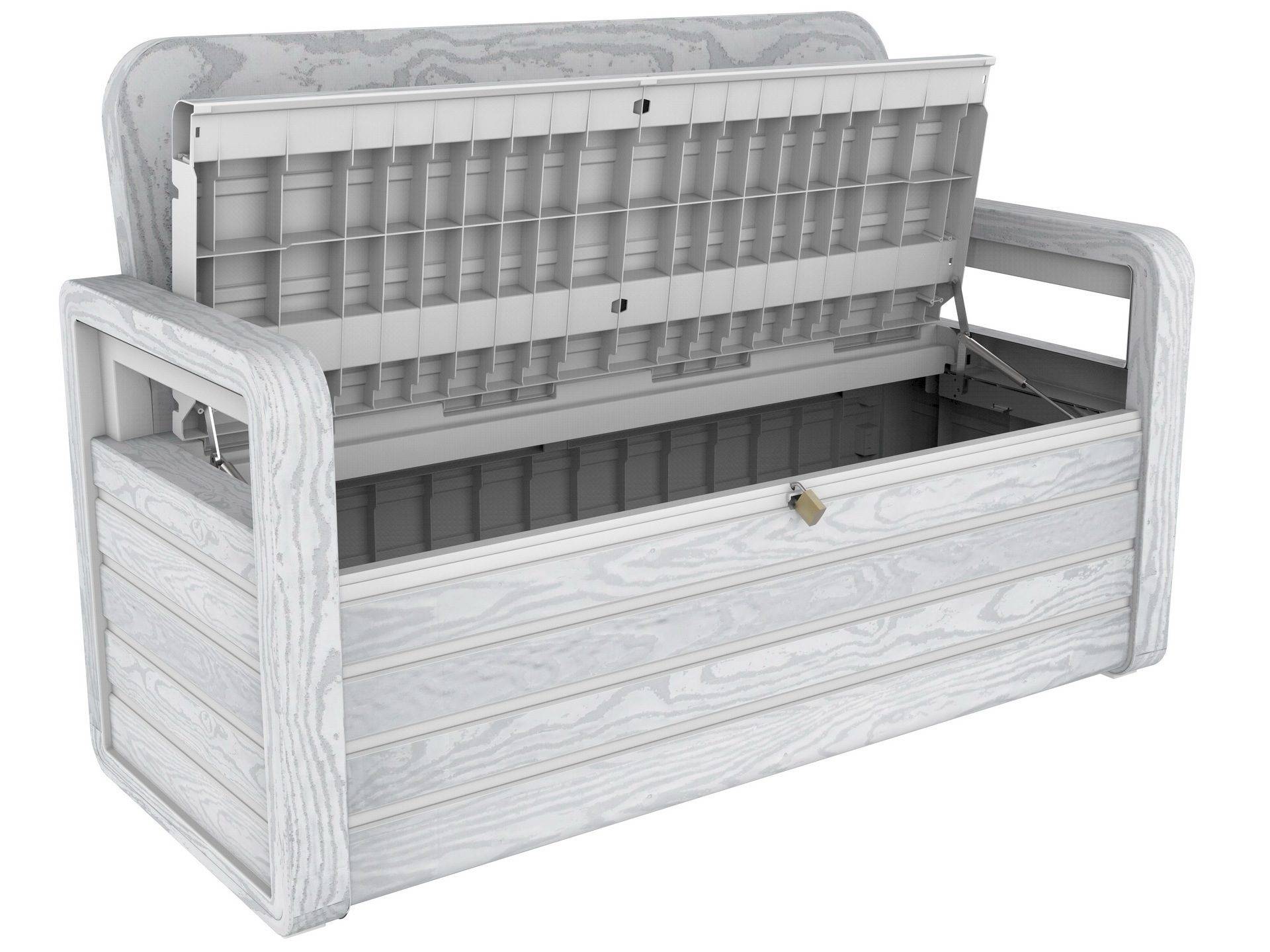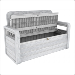 Сундук-лавочка TOOMAX выдерживает 2-их взрослых, его внутренний объем составляет 270 л! В него не попадает влага от дождя, есть гидролифт, его можно закрыть на замок. Он не выцветает.