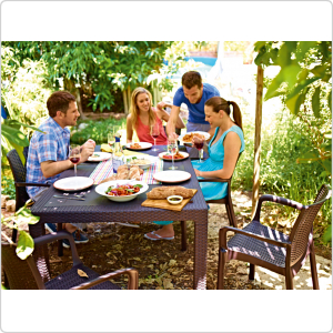 Удобный устойчивый стол отлично сочетается со всеми стульями фирмы Keter. Например, с моделями Bali, Monatana и Minesota. Дополните стол стульями, и Вы получите комплект мебели для дачи, который обеспечит приятный семейный отдых и веселые праздники.