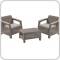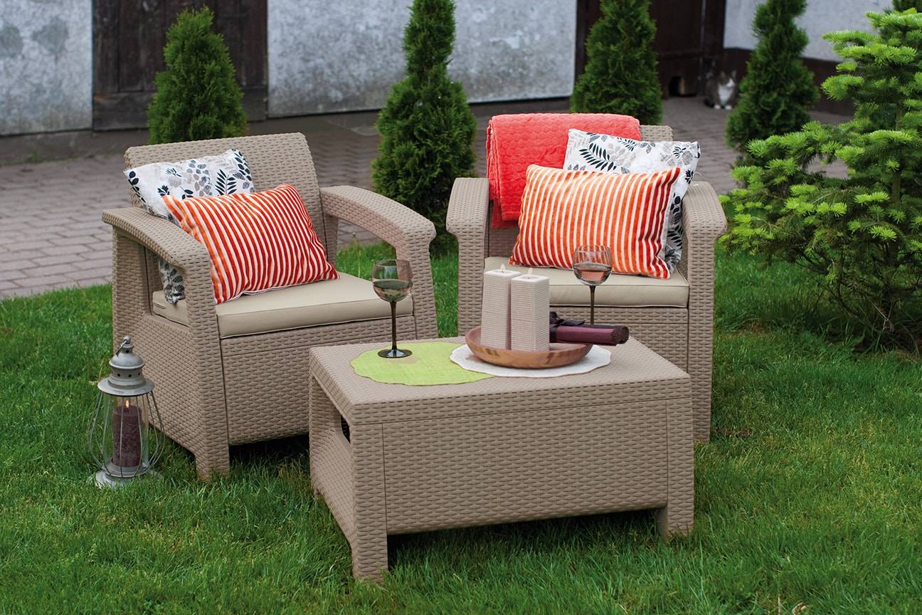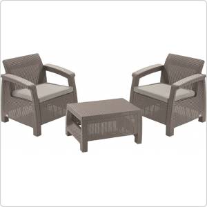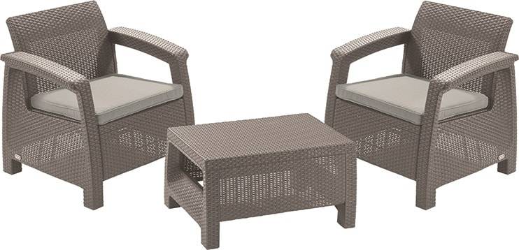 Комплект мебели Corfu Weekend Set выполнен под искусственный ротанг. Он станет настоящей "изюминкой" любого дачного участка. Подарит особый комфорт и уют. Комплект изготавливается из прочной пластмассы. Он износостоек, его цвет не выгорает и не бледнеет со временем. Благодаря отсутствию металлической рамы не ржавеет и не гниет. Комплект мебели прекрасно выдерживает уличное использование.
