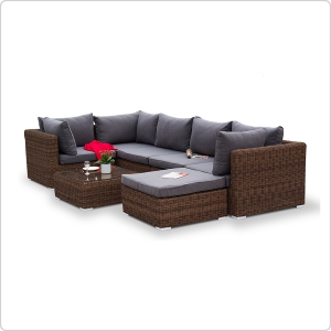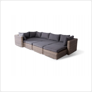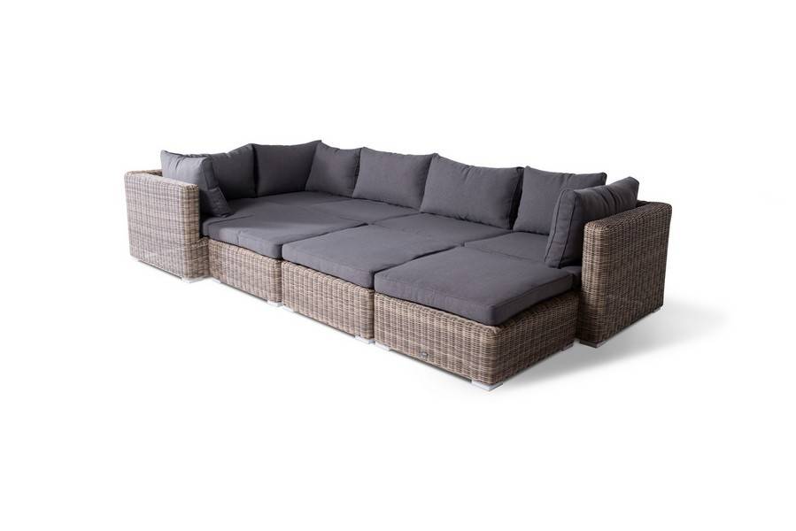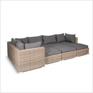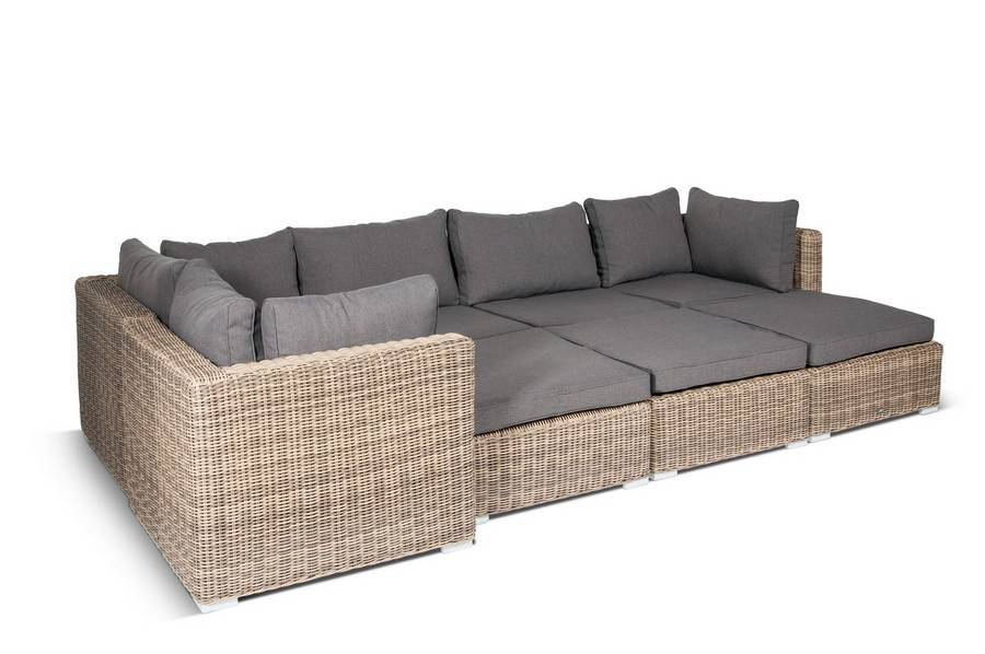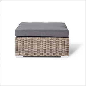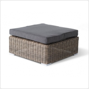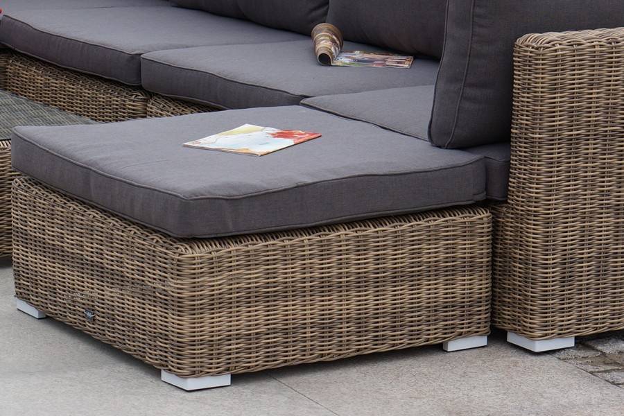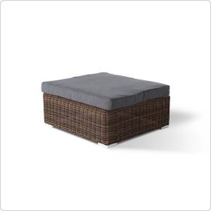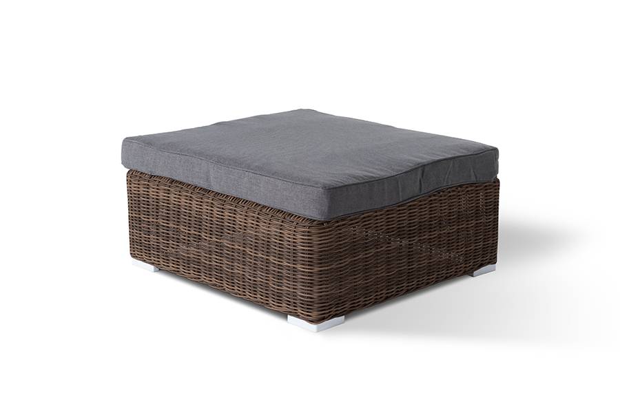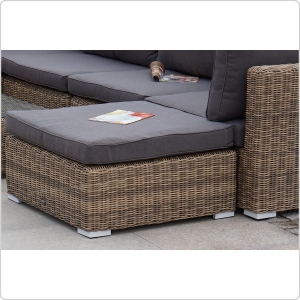 Она имеет каркас из алюминия высокой прочности. Для изготовления используется ручное круглое плетение, выполненное из искусственного ротанга. Оттоманка может служить в комплекте с трансформирующимся диваном «Лунго».