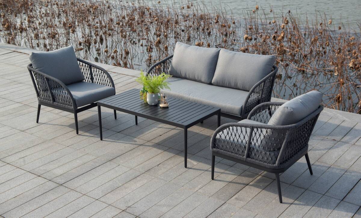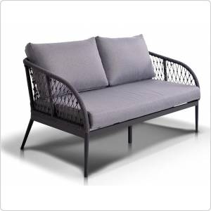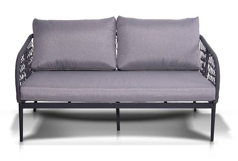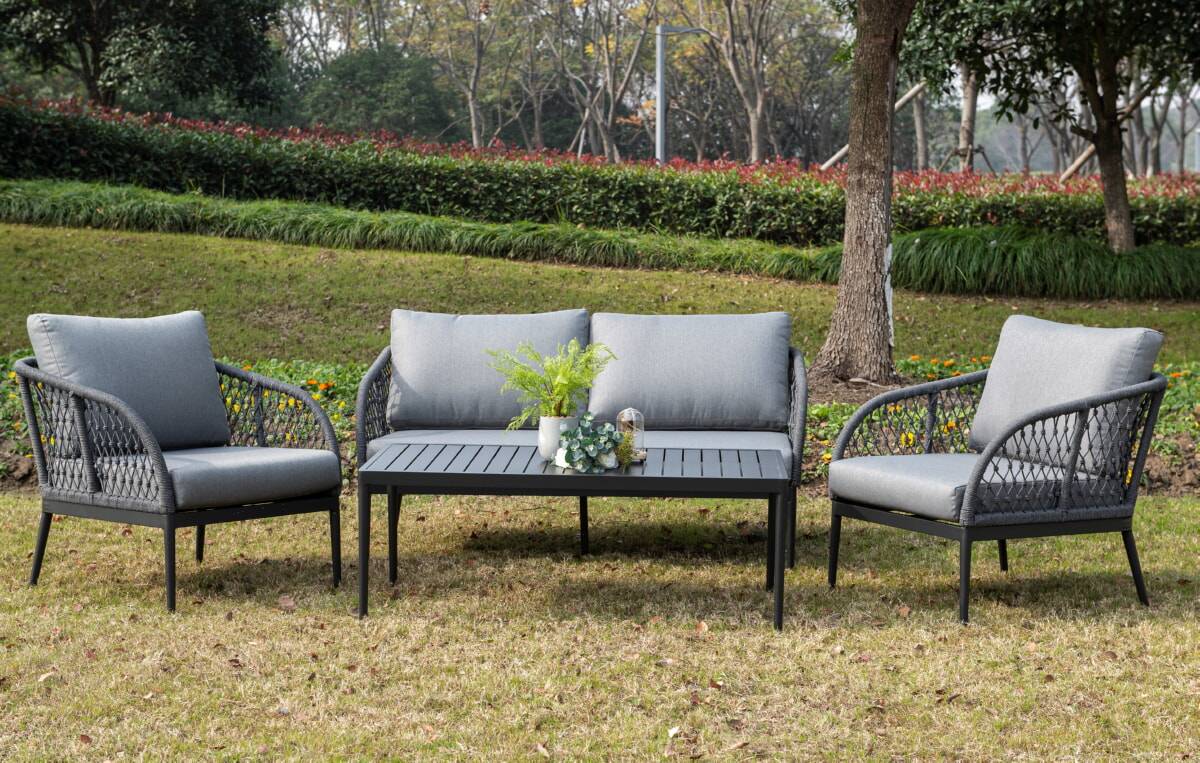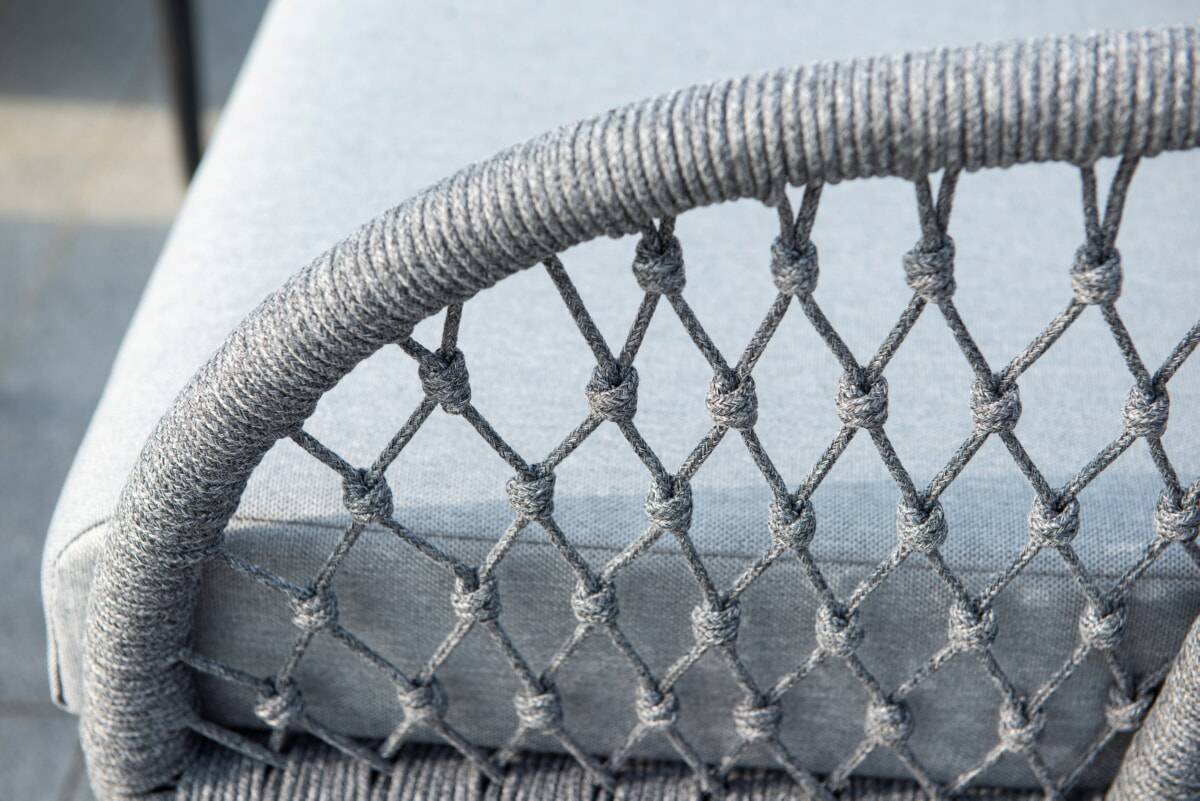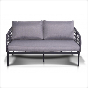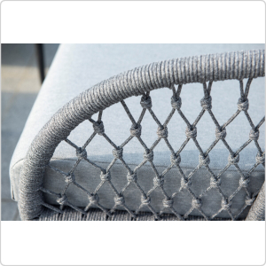 Алюминиевый каркас отвечает за прочность мебели. Он дополнен декоративной ручной оплеткой, которая изготовлена из эластичных синтетических лент. За основу взято высокопрочное полиэфирное волокно. Модель представлена в темно-сером цвете.