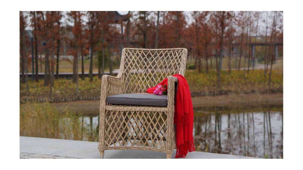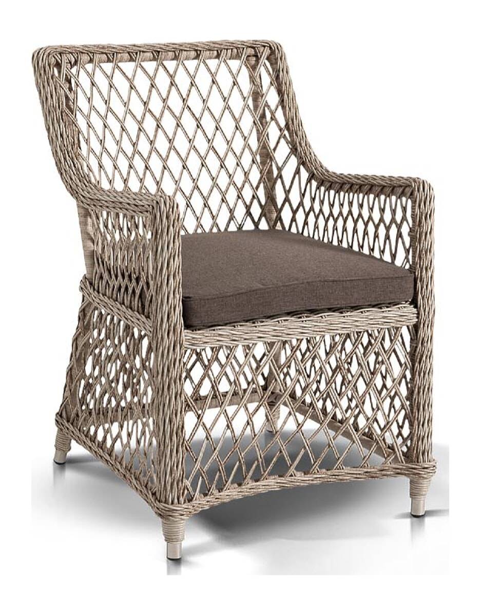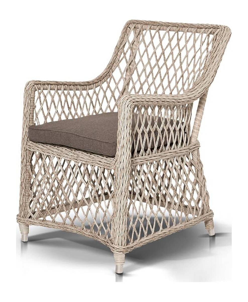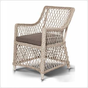 "Латте", плетеный кресло в комплекте с подушкой, алюминиевый каркас, искусственный ротанг, ручное круглое плетение, размер 680х550х840 мм, цвет белый и соломенный