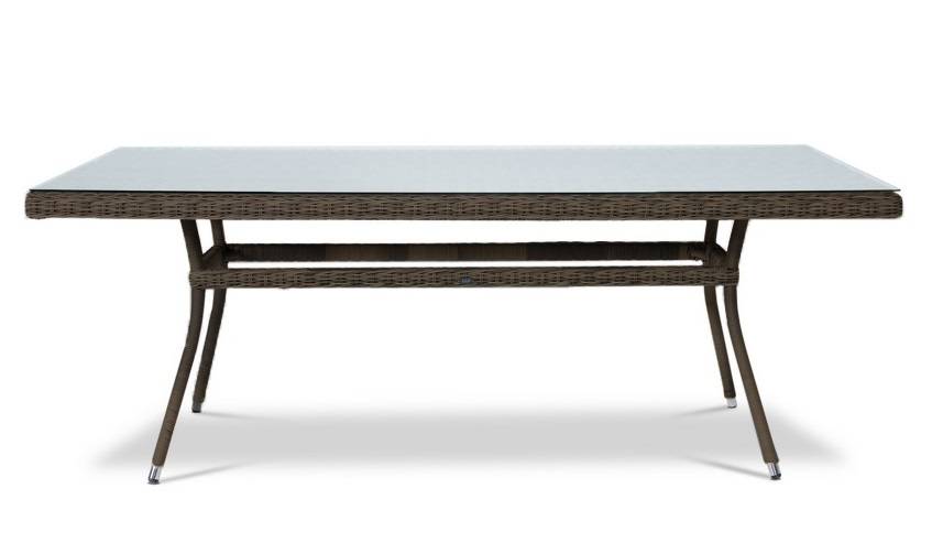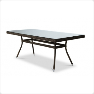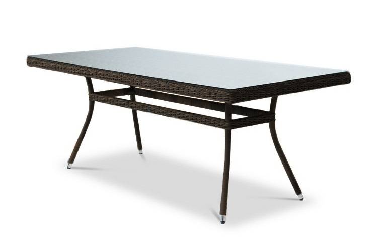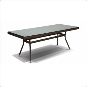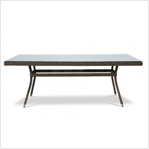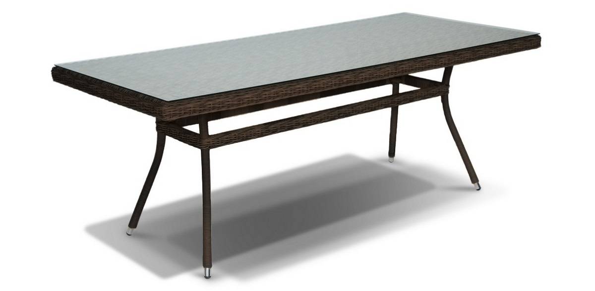 "Латте", стол со стеклянной столешницей толщиной 5мм, алюминиевый каркас, искусственный ротанг, ручное круглое плетение, размеры 2000х900х750, цвет коричневый