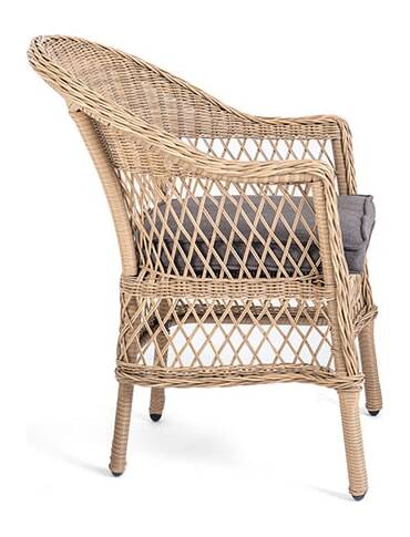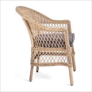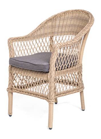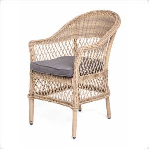 Стул Сицилия из круглого искусственного ротанга соломенного оттенка. Размер ширина 59 см, глубина 64 см, высота 82 см.