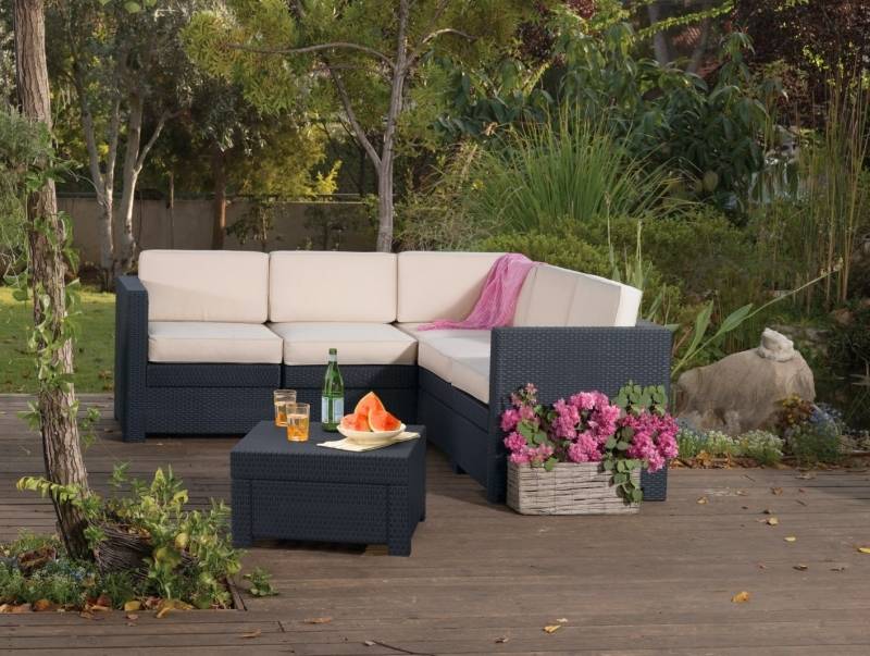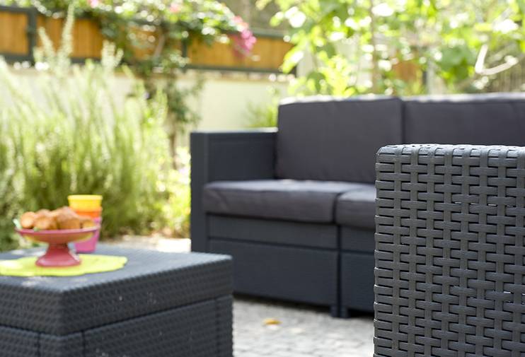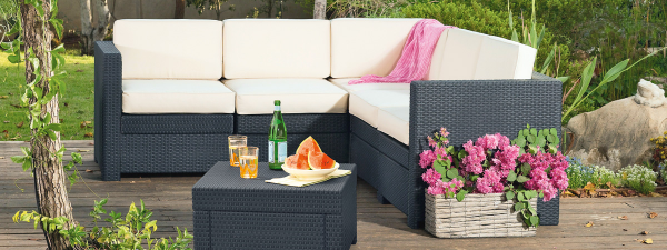 Угловой комплект мебели Keter Provence изготовлен из прочного атмосферостойкого пластика. Отсутствие металлических деталей гарантирует отсутствие ржавчины и долговечность. Несмотря на то, что комплект выполнен без металлического каркаса, он отличается великолепной устойчивостью, прочностью и без труда выдерживает большой вес.