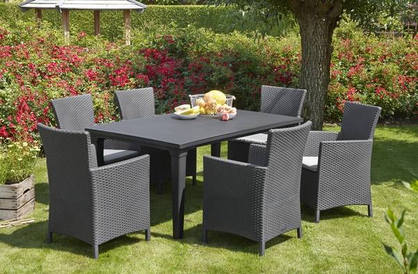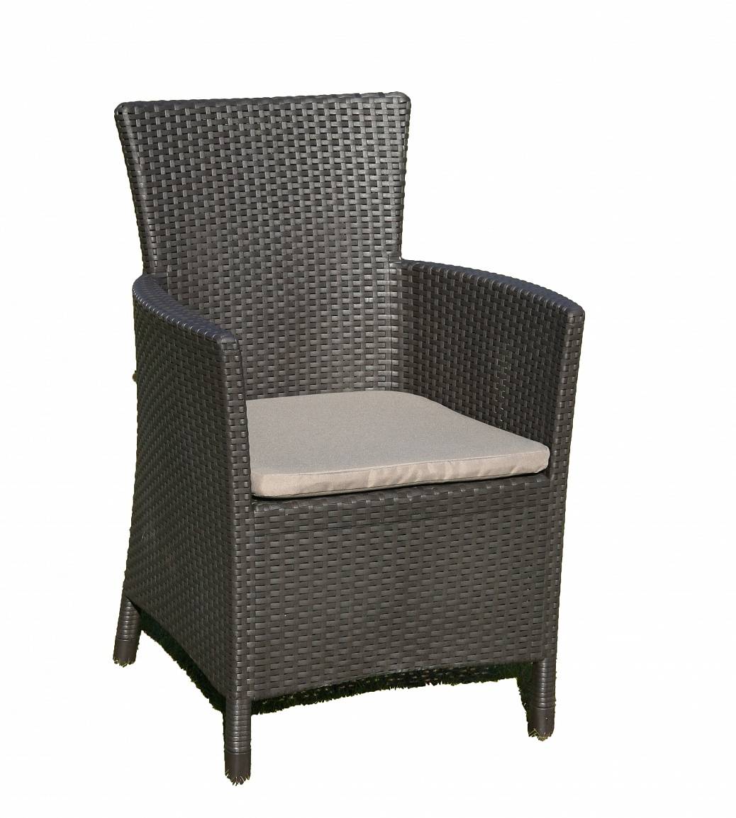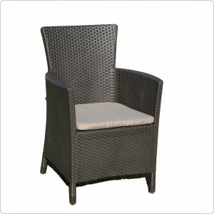 Кресло для дачи выполнено из погодостойкого пластика, имитирующего искусственный ротанг. Оно не выгорает на солнце, не деформируется и может храниться на улице хоть круглый год. Чехол на подушке изготовлен из водоотталкивающей ткани, поэтому кресло Монтана идеально подходит уличного использования – на даче, в саду или загородном доме, а также на балконе.
