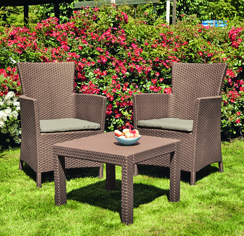 Комплект пластиковой мебели Розарио – новинка. Его отличают стильный дизайн, компактные размеры, небольшой вес и совершенно доступная стоимость.